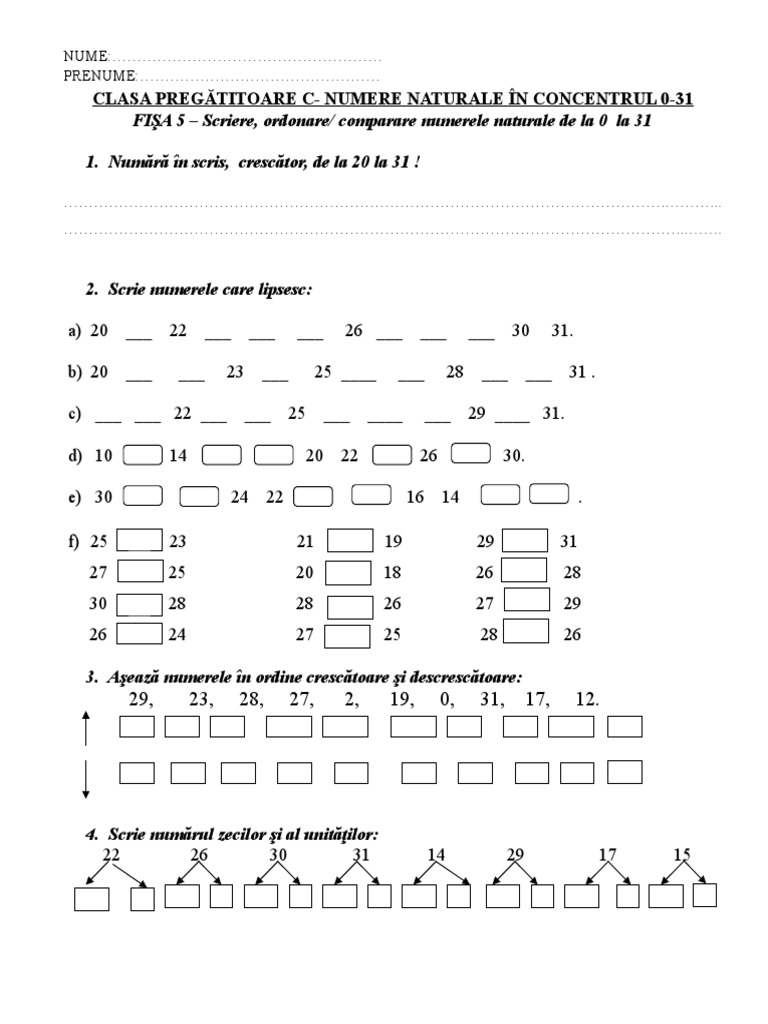 Fișă de lucru adunarea si scăderea numerelor naturale de la 0 la 100 fără trecere peste ordin 1 calculaţi. Materiale didactice constituite din fise de lucru jocuri matematice ce pot fi folosite la disciplina matematica si explorarea mediului pentru clasa pregatitoare. O fișă de lucru pentru consolidarea numerelor 0 31. 5 au spus mulţumesc.