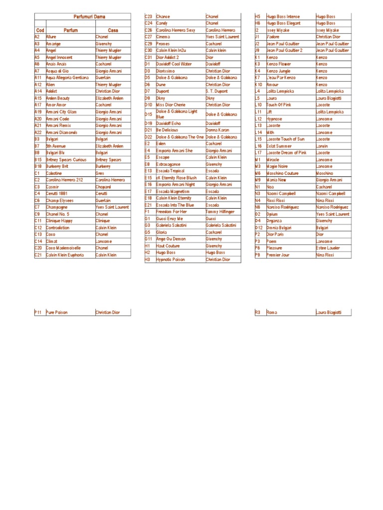 Eau de toilette 100ml sau 50ml deo 2x eau de toilette 30ml promo. Gratis verzending vanaf 50. In the following list you will find the codes of the brand dp perfumum and the known fragrances simulated by them. A1 halloween alchimie a2 distinguée allure a3 cobra amarige a4 virginia angel a5 tendance angel innocent a6 sonia anaïs anaïs a7 danube acqua di giò a8 equilibre aromacalm a9 fitnesse aroma fit a10 henriette.