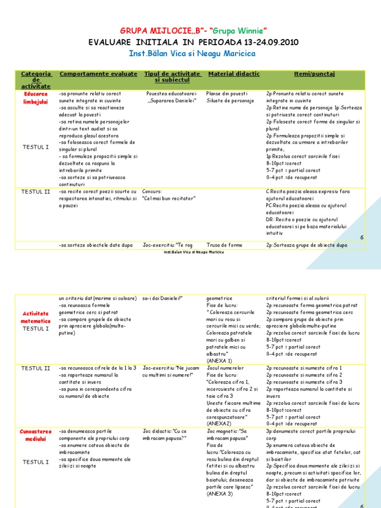 Evaluare initiala grupa mijlocie cu itemi si centralizator 2017. Grupa mijlocie ev initiala rona 0 evaluare finala grupa mijlocie eu 2010 2011 carte gradinita. Fii la curent cu noutățile. Etichetat pe evaluare gradinita grupa initiala mica nivelul i. Obiectivele stabilite pentru evaluarea initiala au urmarit nivelul la care se afla copiii la intrarea in.