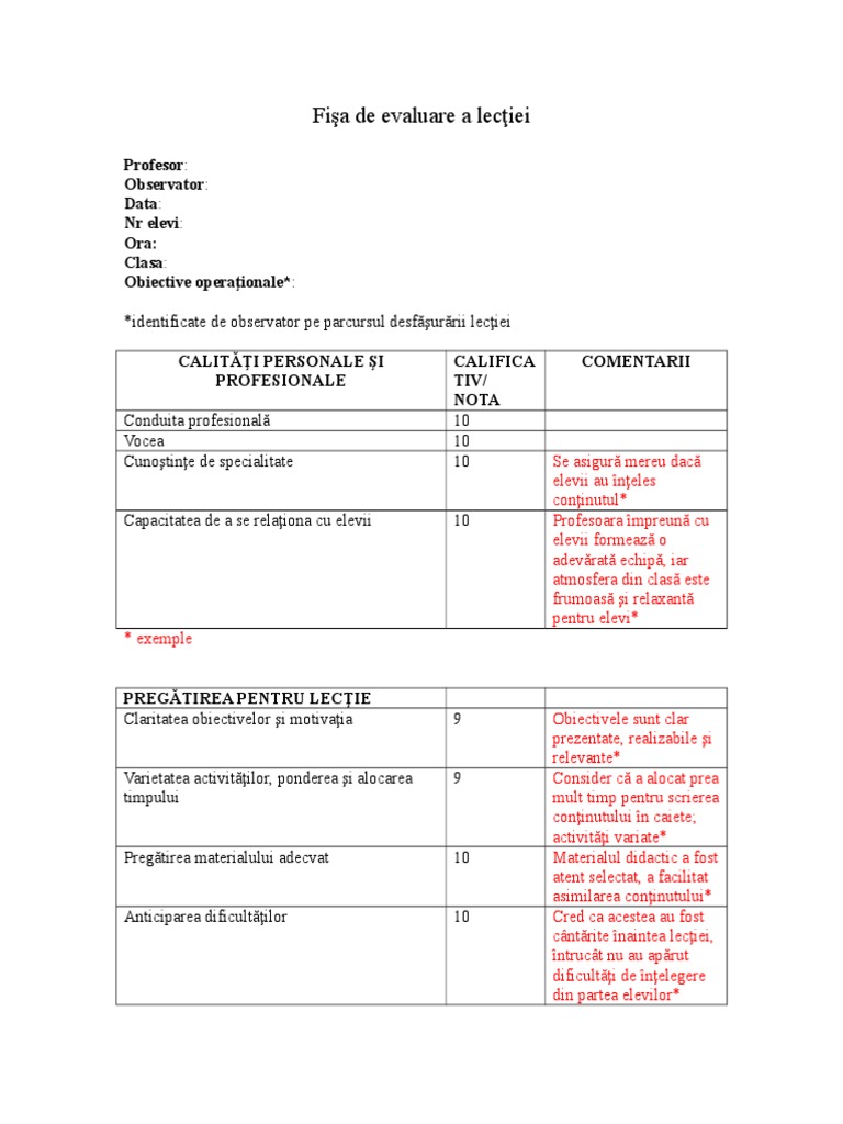 Fisa de observare a unei lectii. Fisa de evaluare a lectiei. Teste de evaluare 1 ceac 7 fisiere importante 6 autentificare. Roșu predare exclusiv online.