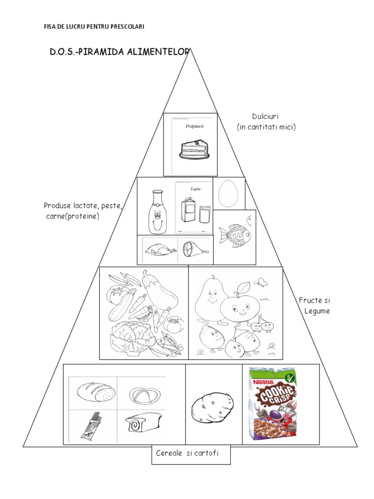 Fisa de lucru piramida alimentelor. Zece pasi spre un comportament alimentar benefic. 0 stele 0 review uri. Micuții au avut parte de o lecție educativă dar și distractivă în același timp. Pentru a se intelege mai usor conceptul de piramida a alimentelor am postat mai jos o serie de imagini ce fac referire la modul in care e necesar sa ne ingrijim de alimentatie pentru a ne pastra sanatosi.