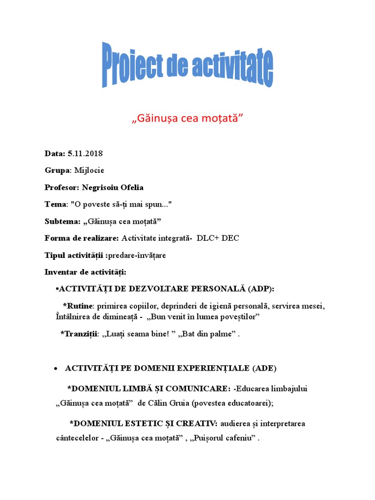 Oua albe eu va fac cotcodac cotcodac. Gainusa cea motata este tare ingamfata face un ou la saptamana si se lauda o luna. Fisa de lucru dlc gainusa cea motata grupa mijlocie mare. De atata nfumurare face o larma ingrozitoare de crezi ca s a luat la sfada tot norodul din ograda.