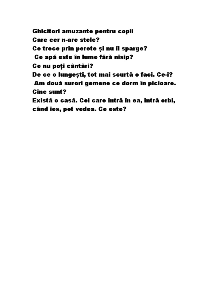 Ti am pregatit o lista cu cele mai interesante ghicitori pentru copii din care sa alegi. Ghicitori amuzante rezolvă testul ghicitori amuzante pe platforma educațională kidibot. M ai auzit înainte acum mă auzi din nou. Ghicitorile pentru copii sunt utile in dezvoltarea asocierilor.